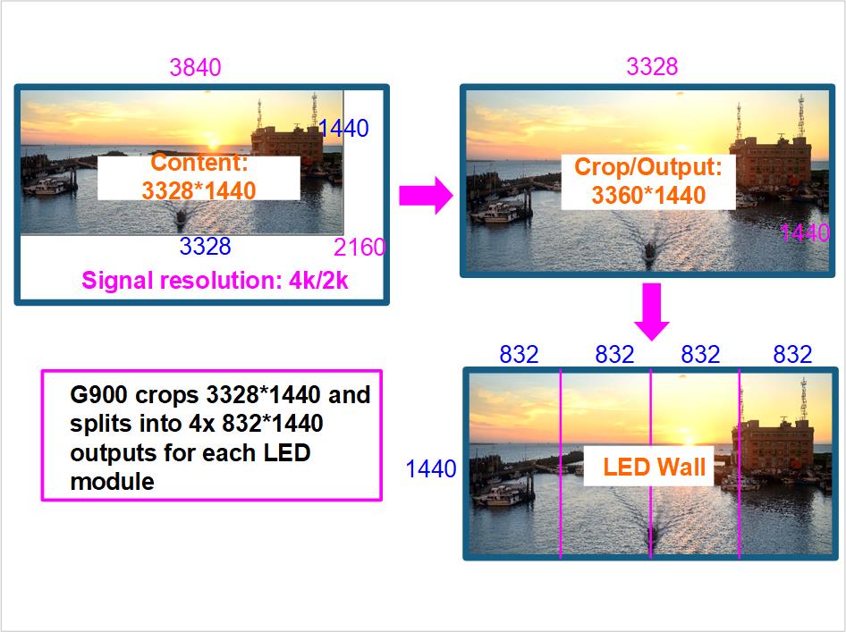 - Écran phare en magasin: G901 pilote un seul panneau UHD avec POP, mélangeant signalétique et caméra en direct ; les sources HDR sont automatiquement traitées en SDR 4:4:4 pour des couleurs de marque uniformes.