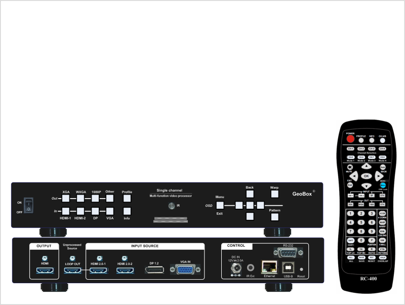 多目的なプロジェクター用ワーピングボックスとして設計されており、複数台のユニットをカスケード接続して大規模なディスプレイに対応できます。