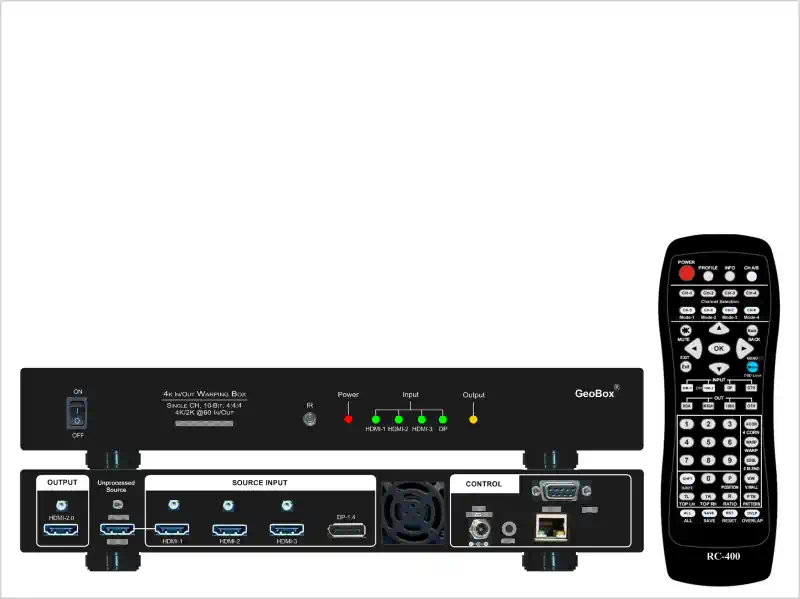 UD101L is a compact 4K warping processor and professional edge blending hardware for projection mapping, curved screens, and multi-projector setups, combining warp/de-warp, video wall control, format conversion, scaler switching, PIP/POP, image cropping, flip/rotation, and quad split multi-view, with precise geometry alignment up to 120 × 68 control points and easy control via IR, USB, Ethernet, or WebGUI.